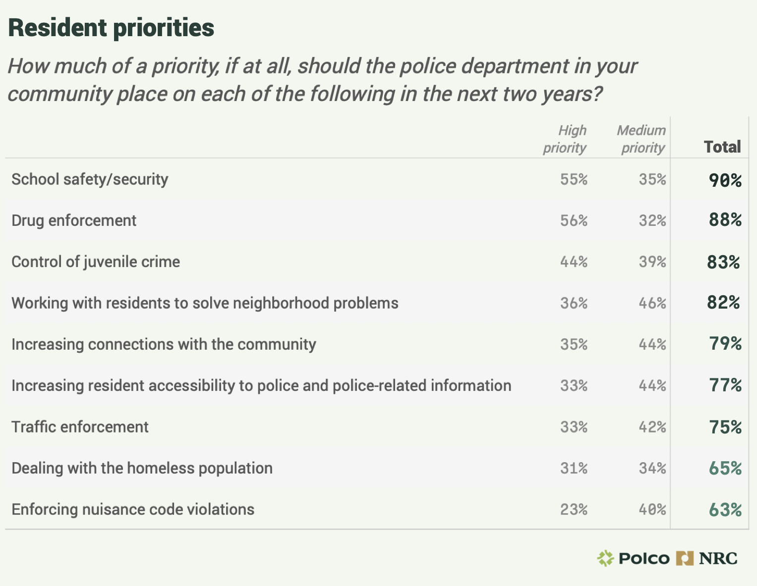 Law enforcement, concerned with day-to-day operations, may wonder about what bigger picture priorities residents want them to focus on.
