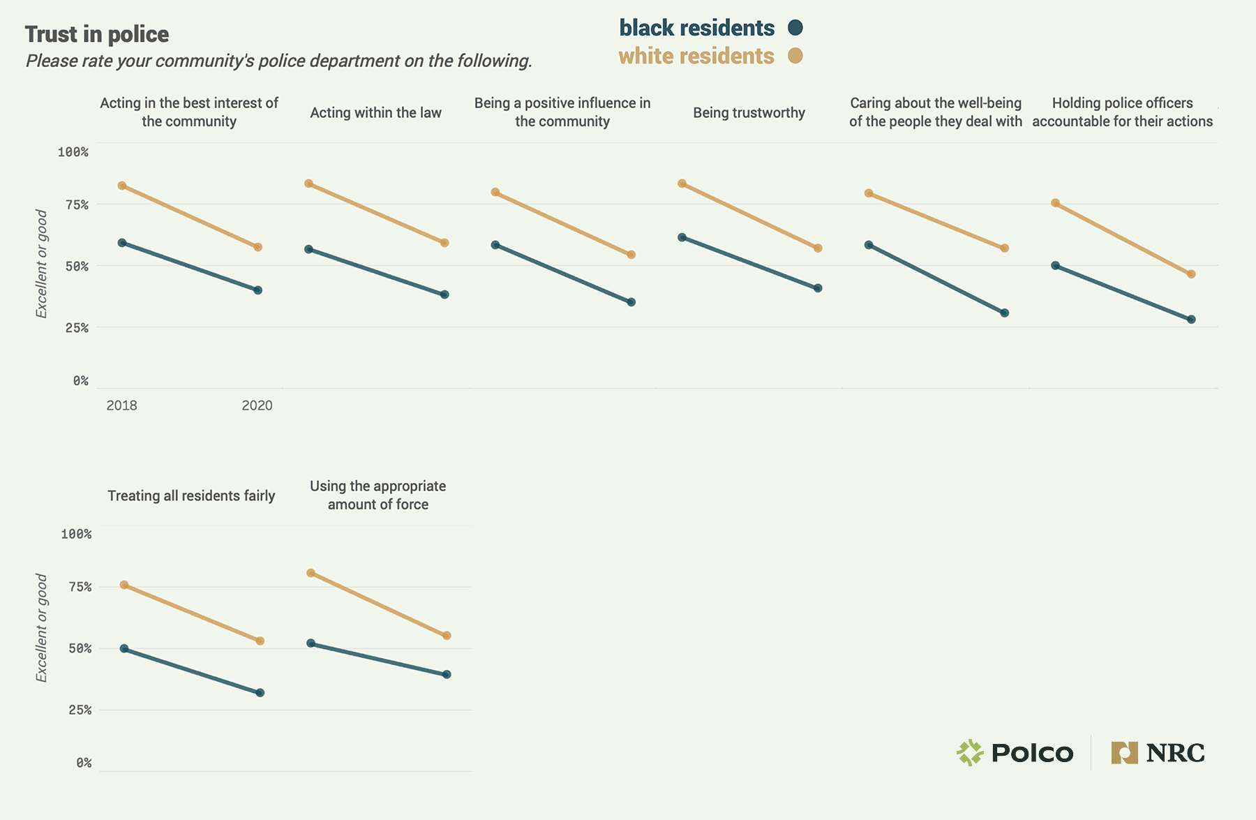 This police study is the second of its kind. National Research Center (NRC) at Polco conducted two nationwide surveys — one in 2018 and 2020 — and compared the results. Data from these surveys are weighted to represent the opinions of millions of Americans.
