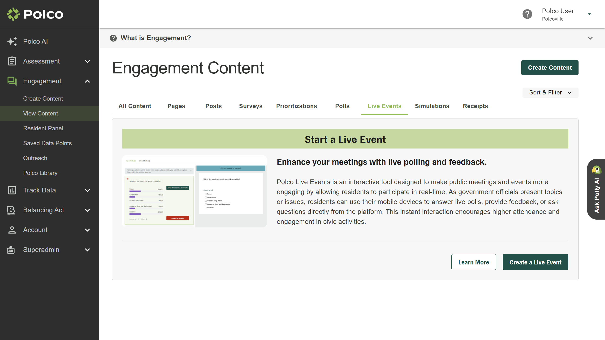 Polco benchmark surveys hold up to the rigors of scientific methodology. They are analyzed and weighted by data experts to give local governments a representative look at their entire community. With Polco, leaders can feel confident incorporating resident feedback into their planning and budgeting decisions. Learn more about Polco’s engagement tools and how they can give you accurate information about community.